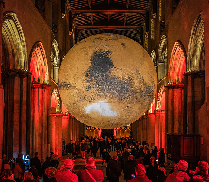 This incredible artwork, suspended from the Nave, follows the success of Gaia in 2022, which drew record numbers to the Cathedral. Crafted from detailed NASA imagery, Jerram’s artwork measures six metres in diameter with every valley, crater, volcano and mountain laid bare for inspection on the Martian surface.